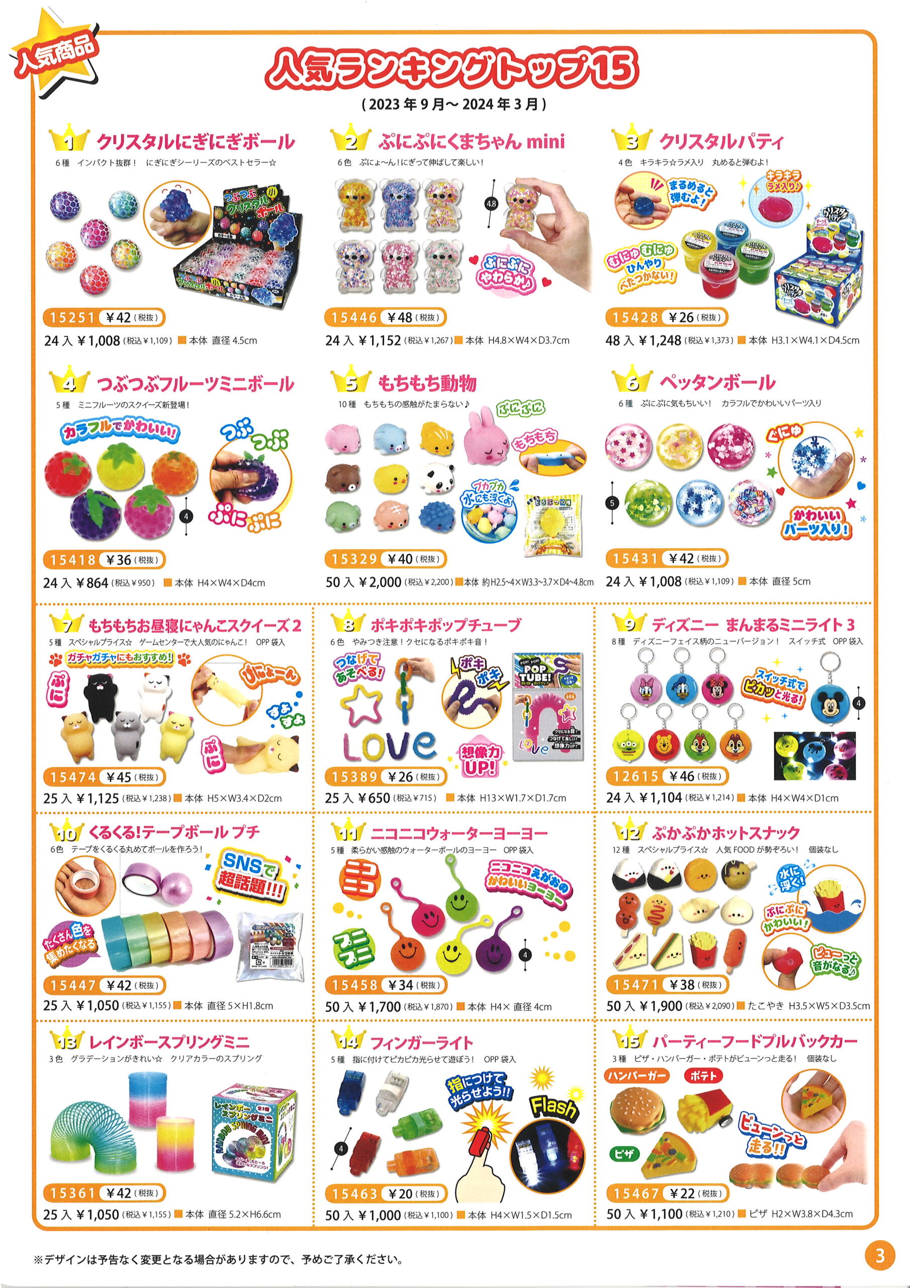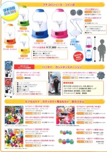 弊社では、単価を抑えた小さめのおもちゃや、おもしろ消しゴム等も取り扱っております。またコイン式のガチャガチャマシーンとカプセルトイ等のご用意もございます。