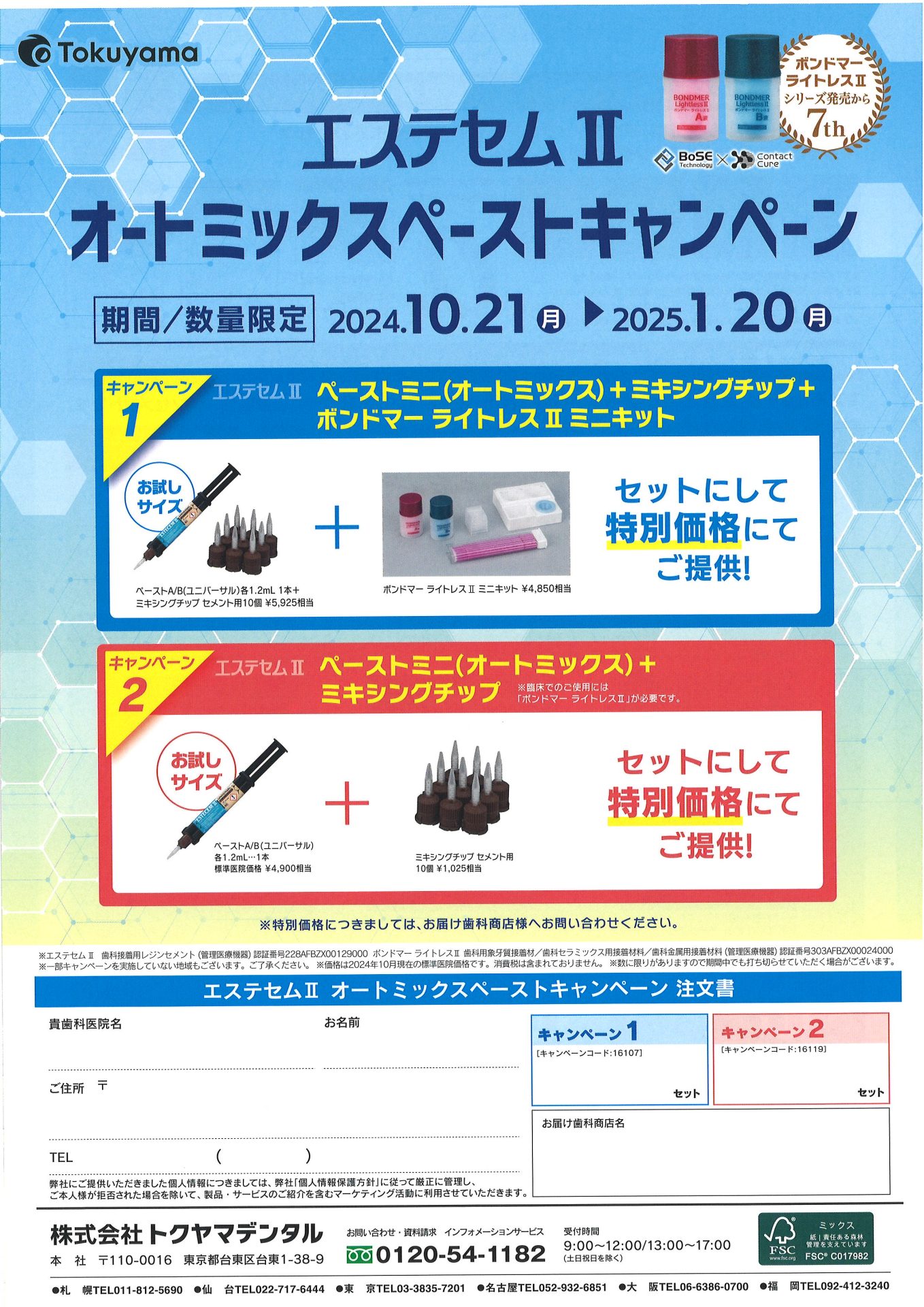 トクヤマエステセムⅡオートミックスペーストキャンペーンが開催中です。