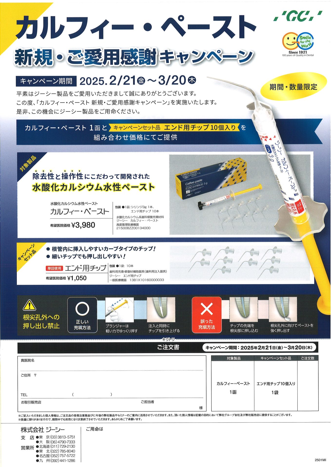カルフィーペースト(水酸化カルシウム水性ペースト)1函とキャンペーンセット品 エンド用チップ10個入りが組み合わせ価格となるキャンペーンが始まりました。【期間2/21-3/20】