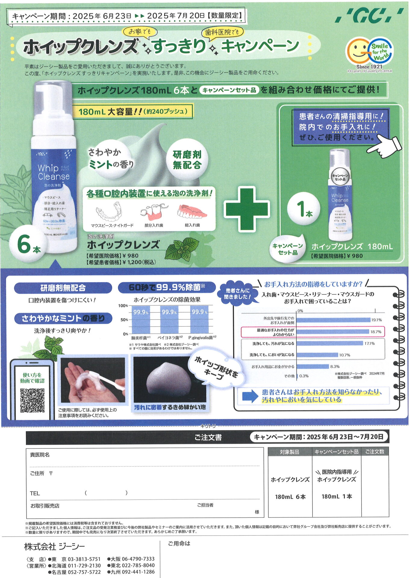 GCホイップクレンズ180ml 6本とキャンペーンセット品(ホイップクレンズ180ml 1本)を組み合わせ価格にてお求めいただけますキャンペーンのご案内です。