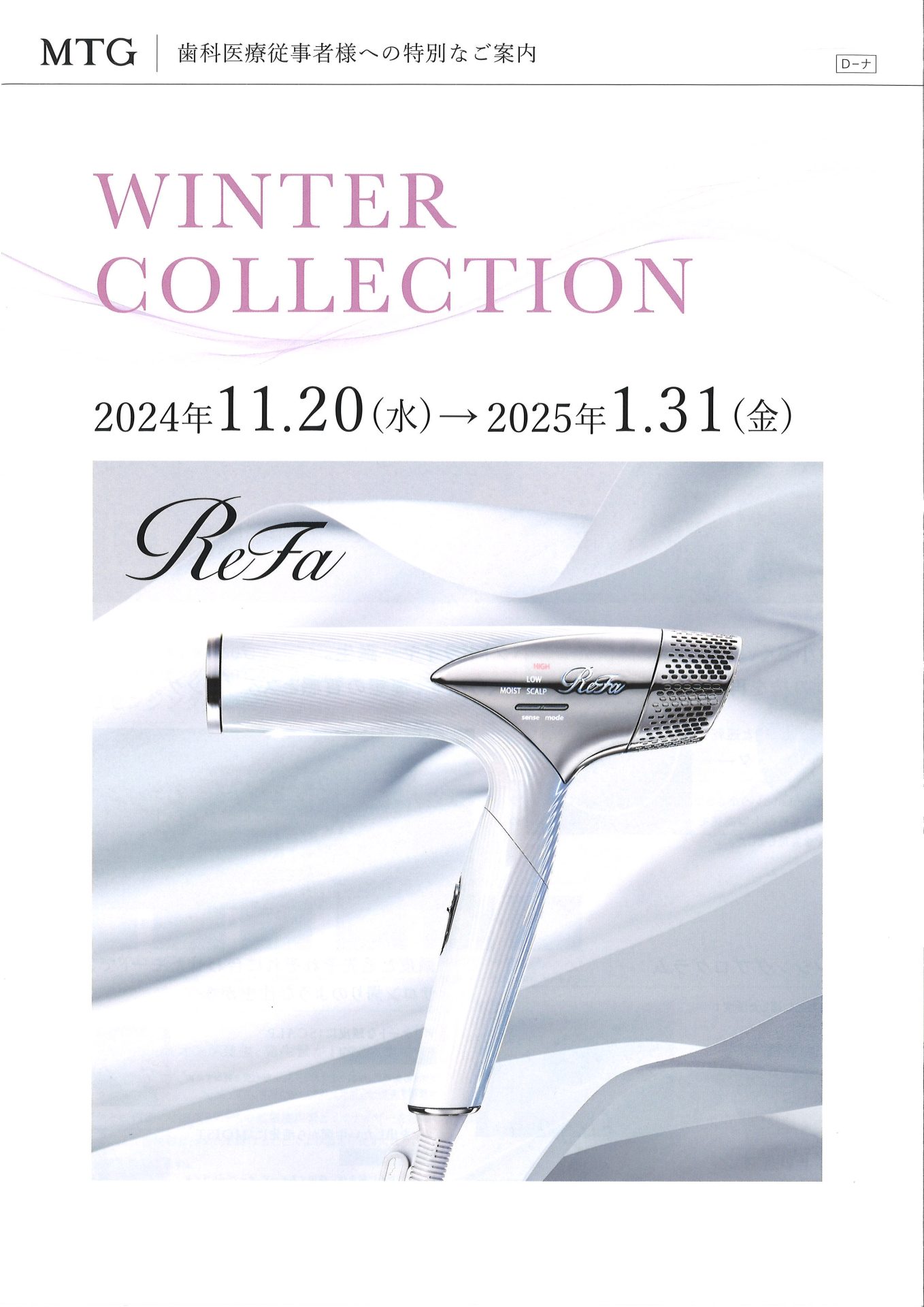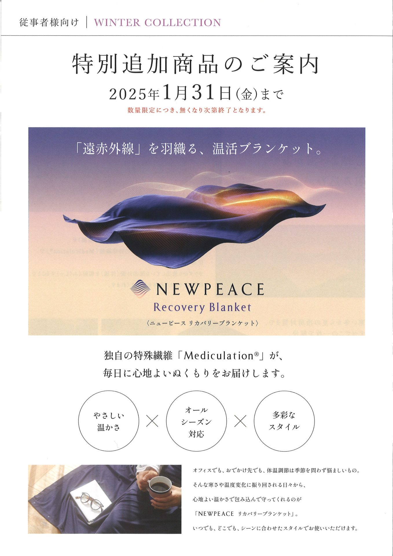 大好評のMTG 歯科医療従事者様向けの製品カタログが届いております。今回は温活ブランケットNEWPEACE Recovery Blanketが追加商品として紹介されています。